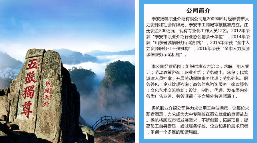 【招聘公告】泰安揚帆職業介紹有限公司某國有企業招聘簡章 [2025-08-14]